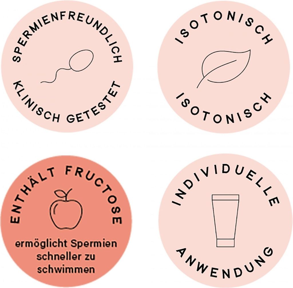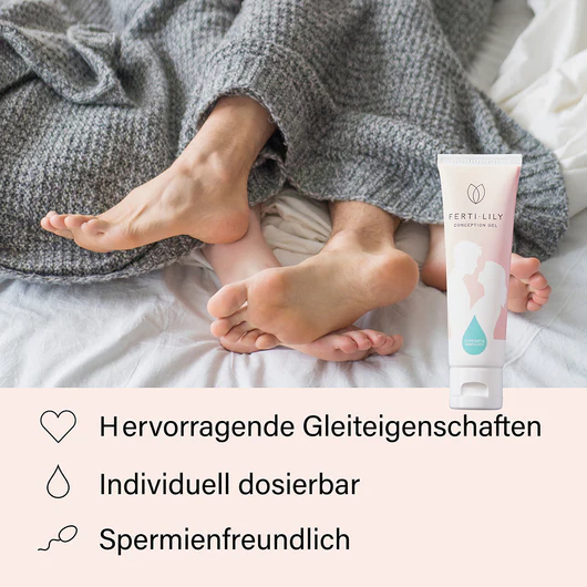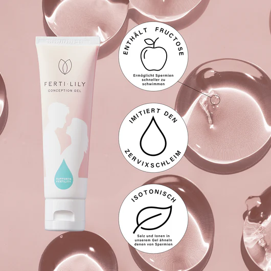 Das FERTI·LILY Kinderwunsch Gleitgel ahmt die fruchtbarkeitsunterstützenden Eigenschaften des Zerfixschleims nach: Die flüssige Konsistenz imitiert die Struktur des Zerfixschleims, der spermienfreundliche pH-Wert fördert das Überleben der Spermien. Außerdem ist das Gel isotonisch, ähnlich dem schützenden Ejakulat. Zusätzlich stärkt das FERTI·LILY Gleitmittel die Mobilität der Spermien und spendet ihnen Energie zum Schwimmen in Form von Fructose.