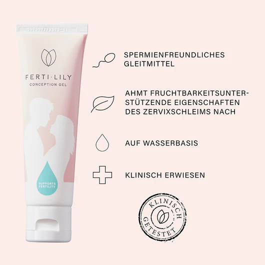 Das FERTI·LILY Kinderwunsch Gleitgel wurde speziell entwickelt, um Paare bei der Empfängnis zu unterstützen. Das spermienfreundliche Gleitmittel erhöht die Gleitfähigkeit während es gleichzeitig das Überleben und die Mobilität der Spermien fördert.